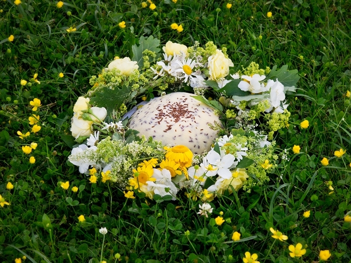 Jāņi cheese is a Latvian sour milk cheese, traditionally eaten on Jāņi – the Midsummer celebration. Today it is available and well demanded all year through. Its basics are raw quark and fresh milk, but other products like eggs and butter can be added to taste. Traditionally, caraway seeds are added as spice but today cheese makers compete in creativity to make new varieties and tastes based on the original Jāņi cheese.